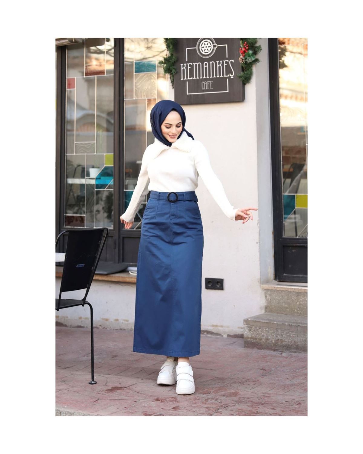 تنورة متوسطة الطول من الليكرا والجبردين باللون الأزرق