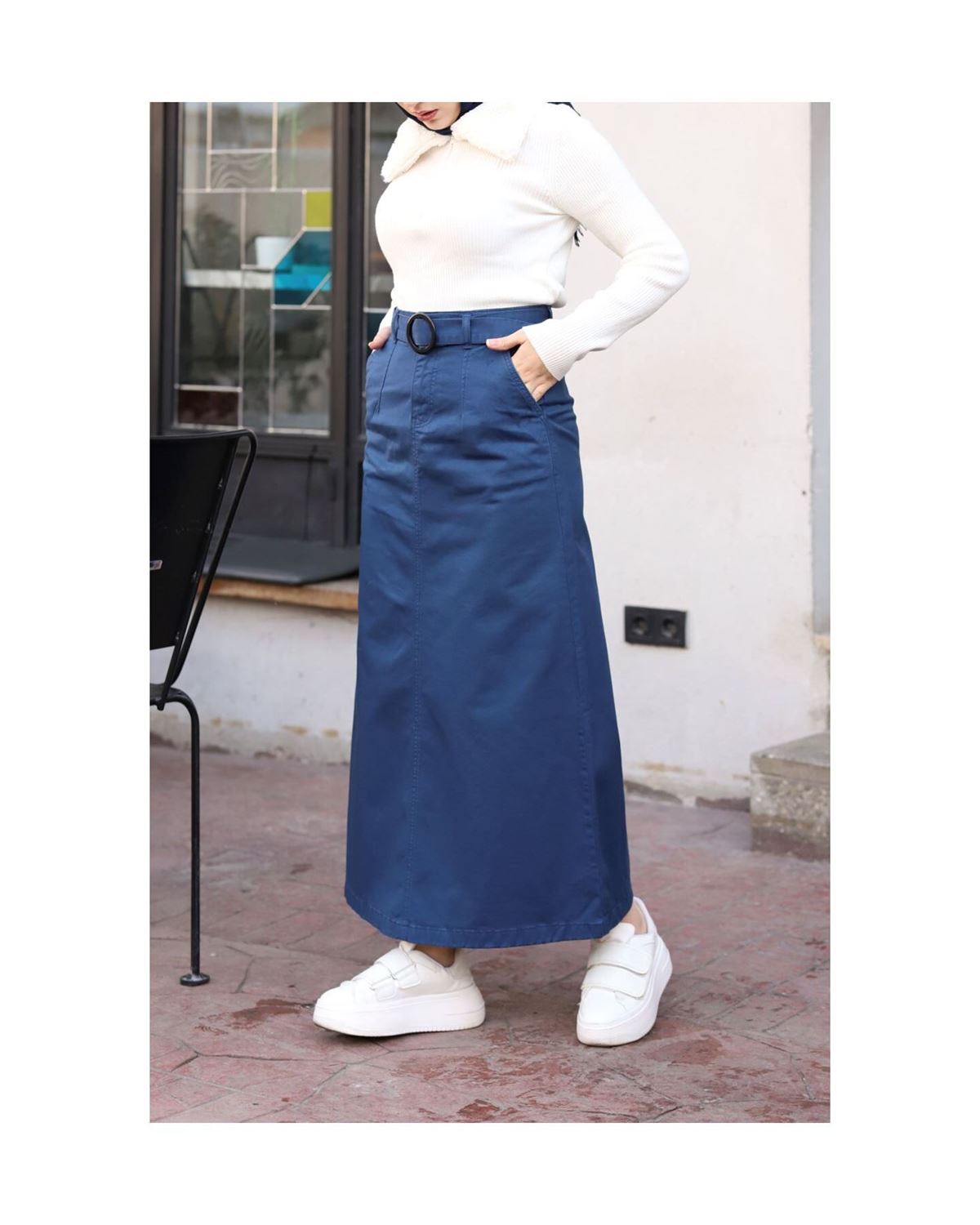 تنورة متوسطة الطول من الليكرا والجبردين باللون الأزرق الداكن