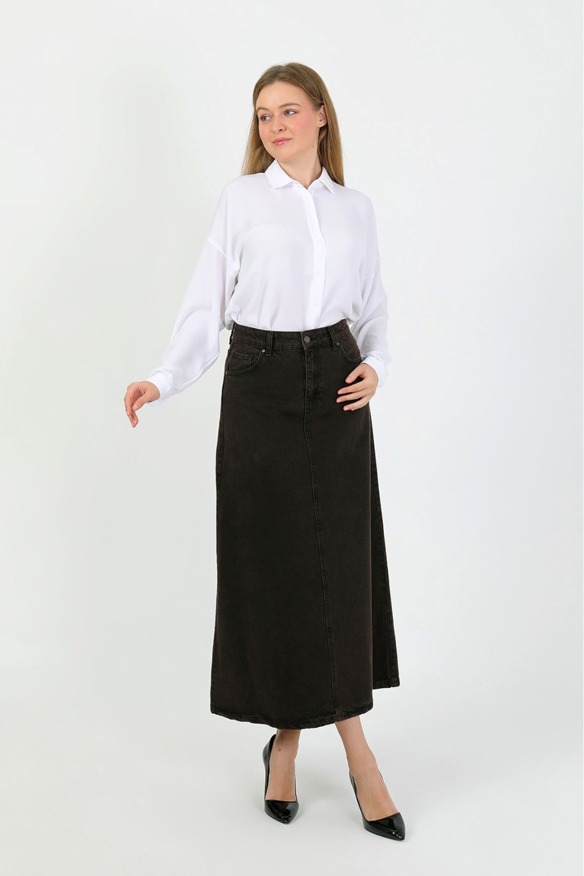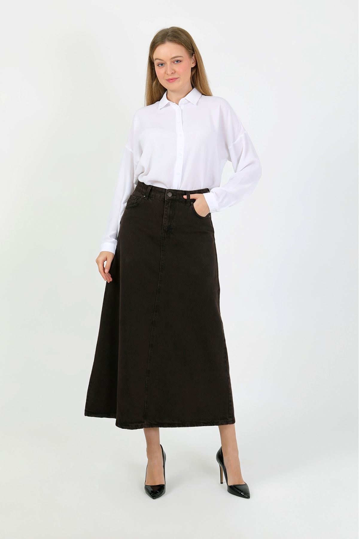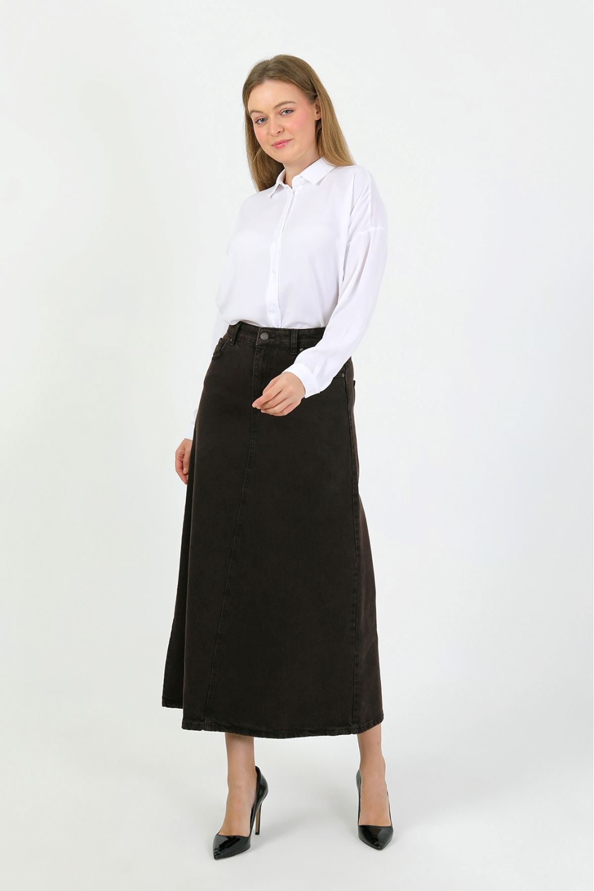 تنورة سوداء عالية الخصر على شكل حرف A