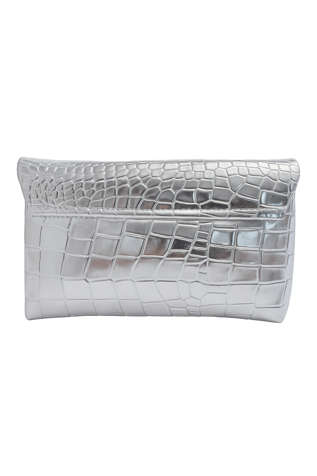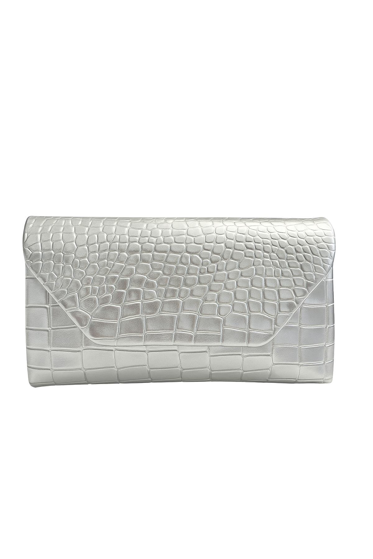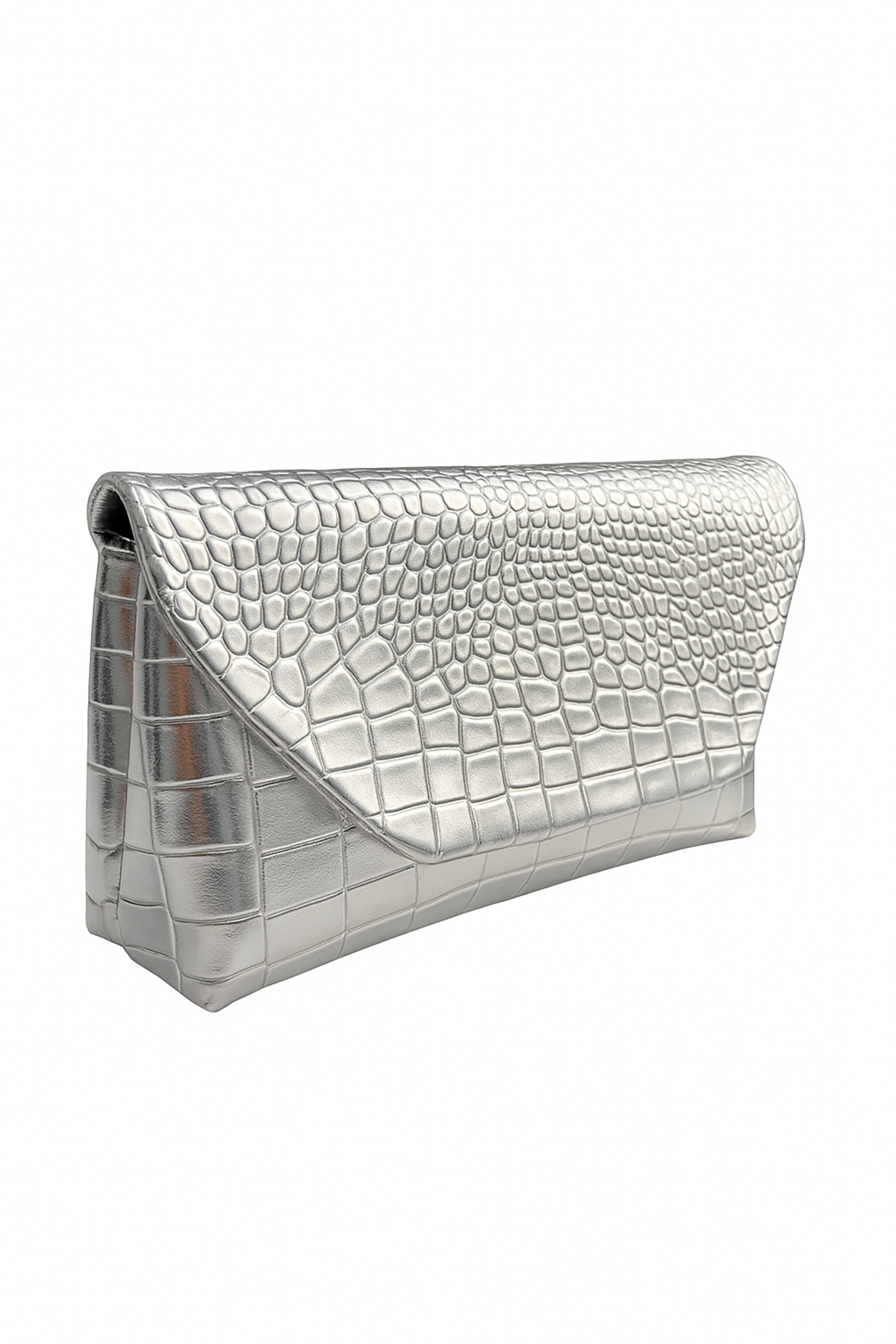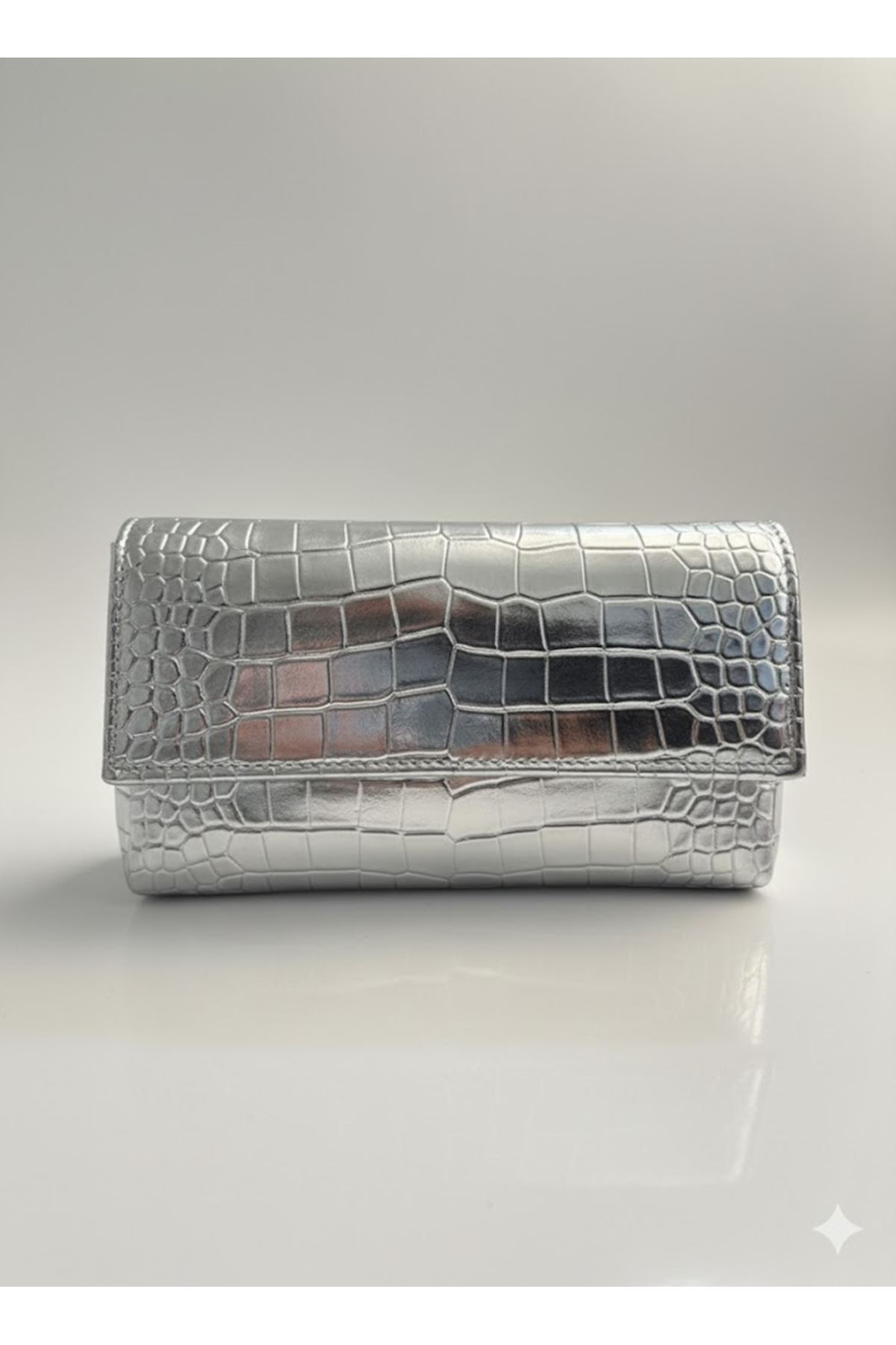 Kadın GÜMÜŞ Timsah Desenli Abiye Çanta – Deri Görünümlü