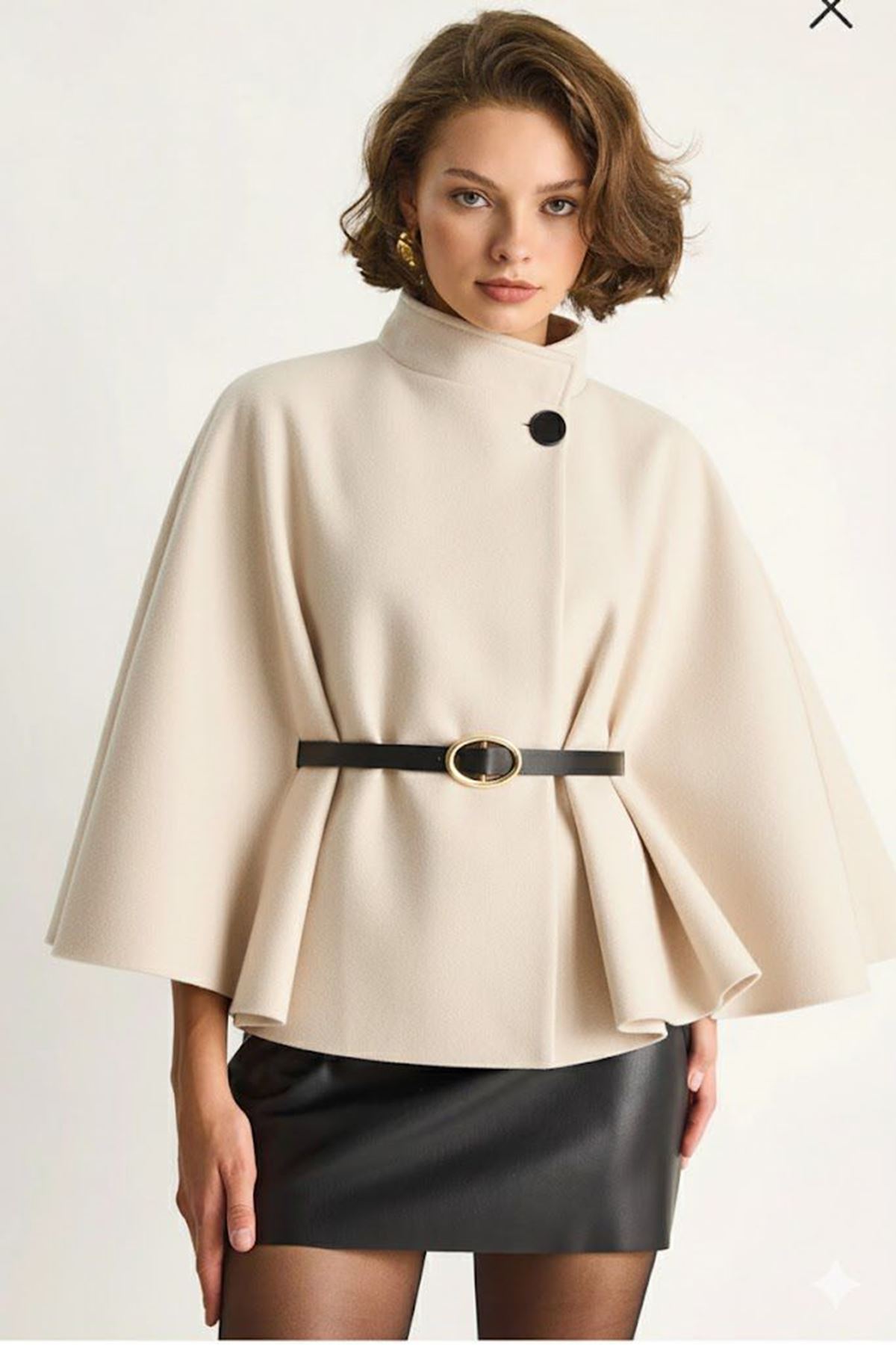 Pelerin formundaki kesimi sayesinde hem özgür hareket alanı sunar hem de sofistike bir duruş kazandırır. Günlük kombinlerde, ofis stilinde veya özel davetlerde kolayca uyum sağlar.