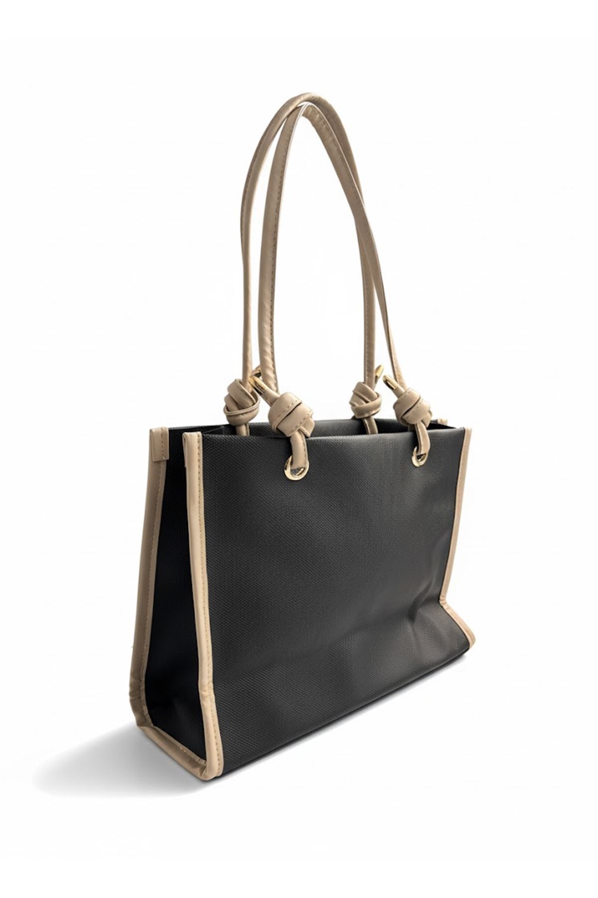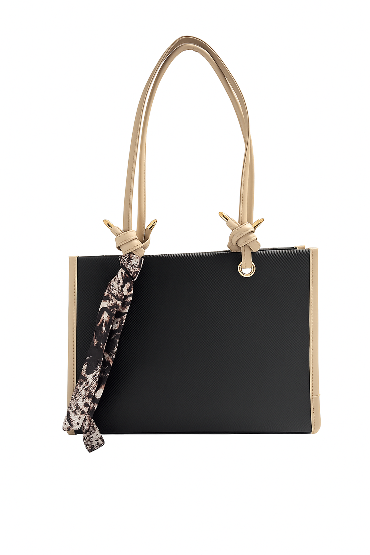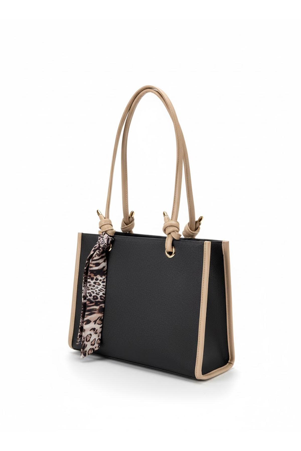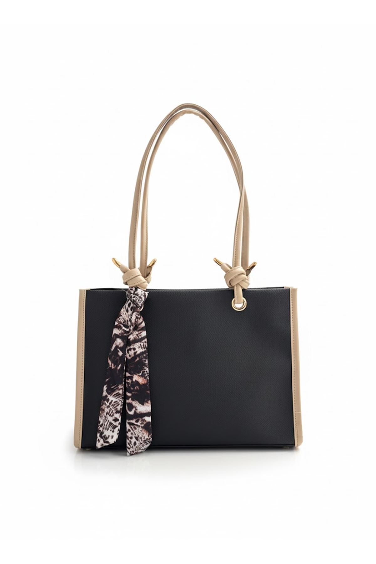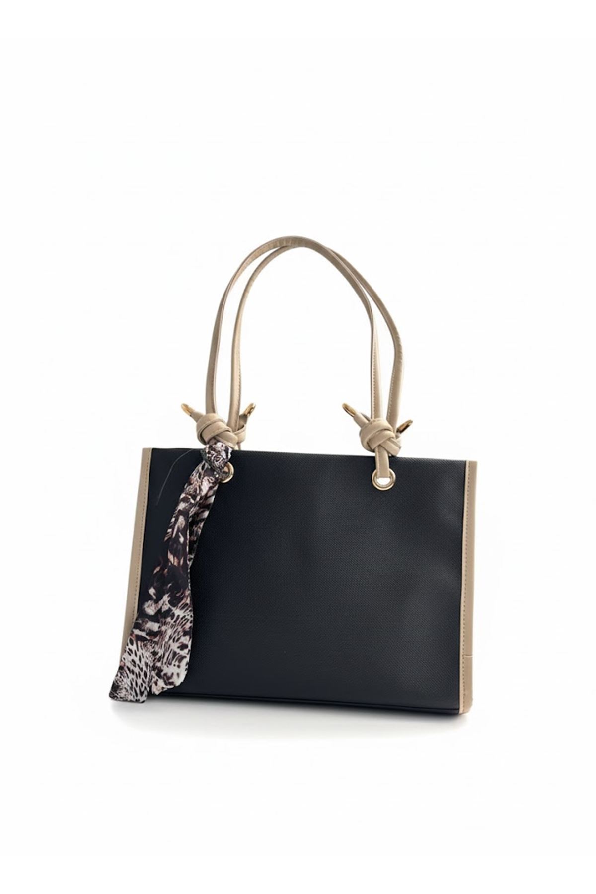 Kadın Siyah Kahve Omuz Çantası – Fular Detaylı Deri Görünümlü