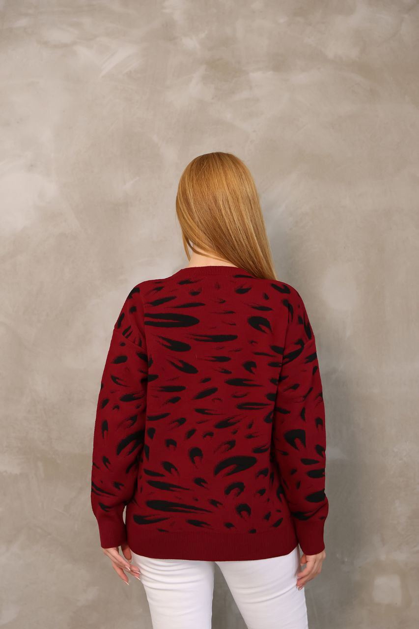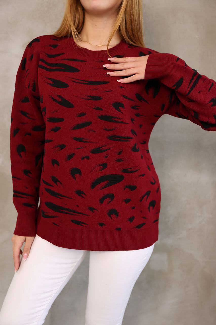 Cesur Tarzın Yeni Yüzü: Bordo-Siyah Desenli Oversize Triko Kazak