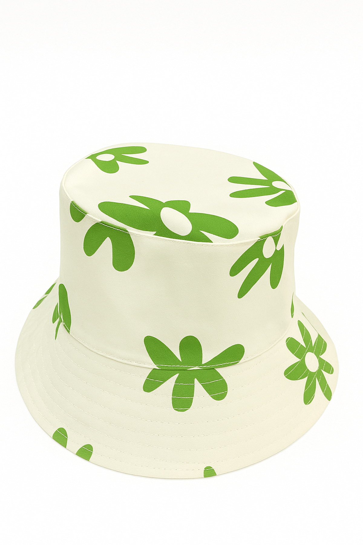 Doğadan ilham alan enerjik tasarımıyla öne çıkan Yeşil Çiçek Desenli Bucket Şapka, sade kombinleri canlandıran bir yaz klasiği.