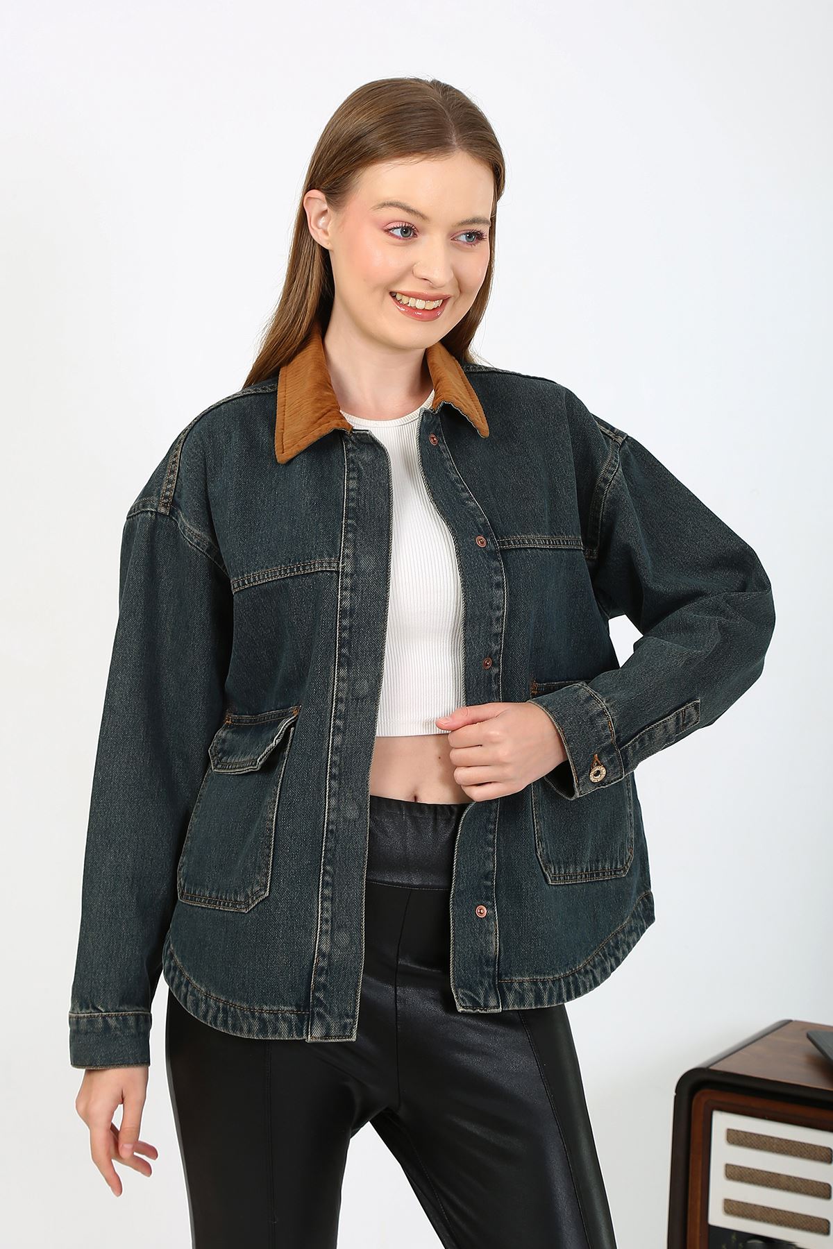KADİFE YAKALI KOT CEKET Koyu Mavi