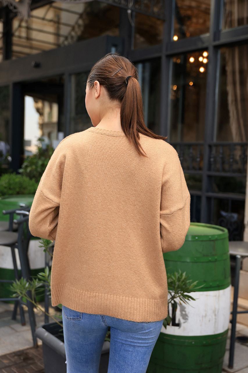 Kış gardırobunuzun en sade ama en güçlü parçası ile tanışın! Sıcak tutan yapısı ve sade tasarımıyla camel renkli basic triko kazak, her kadının dolabında mutlaka bulunması gereken zamansız bir klasik. İster işe giderken, ister hafta sonu arkadaş buluşmalarında… Şıklığı da konforu da aynı anda yaşayın.