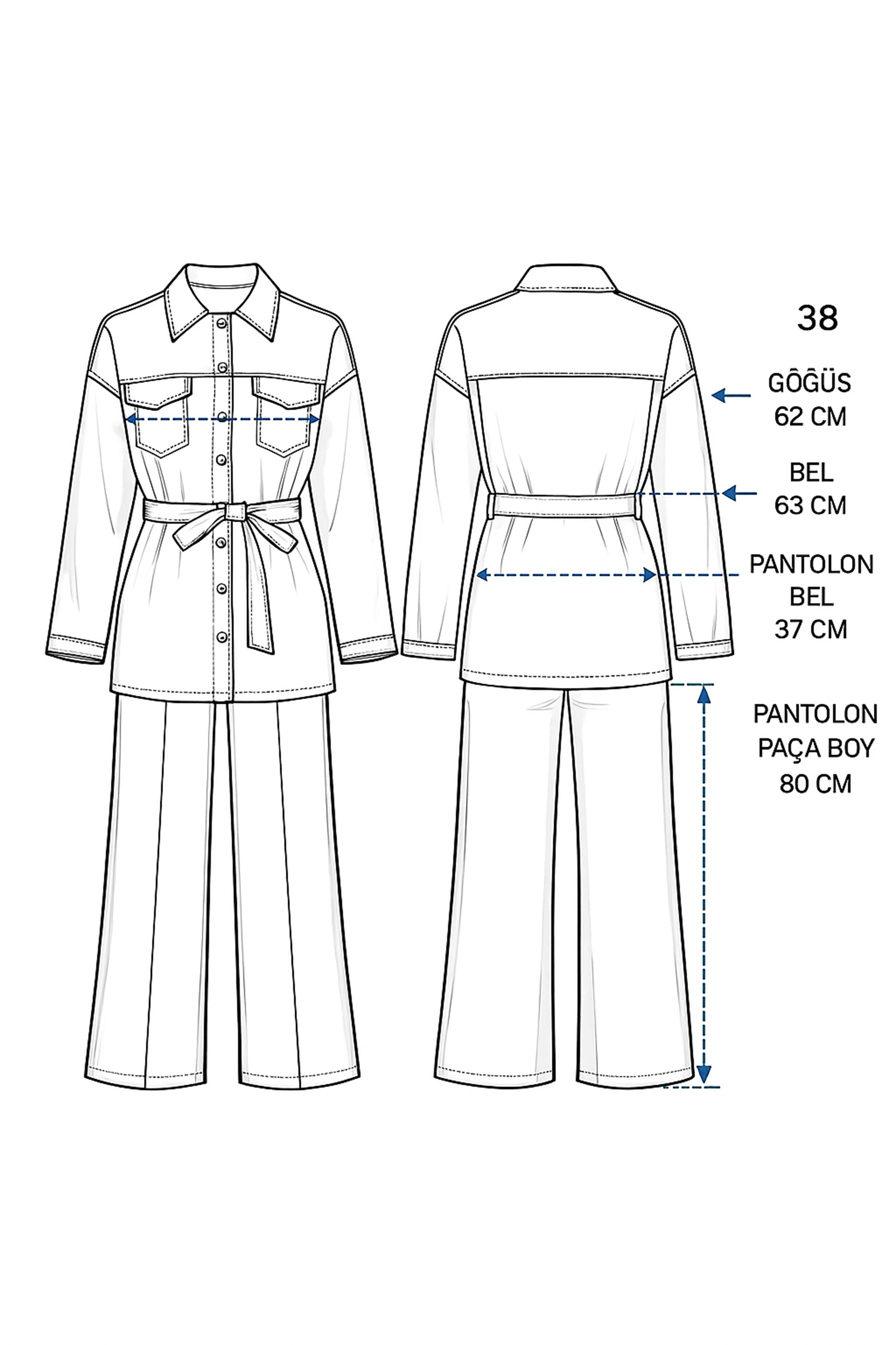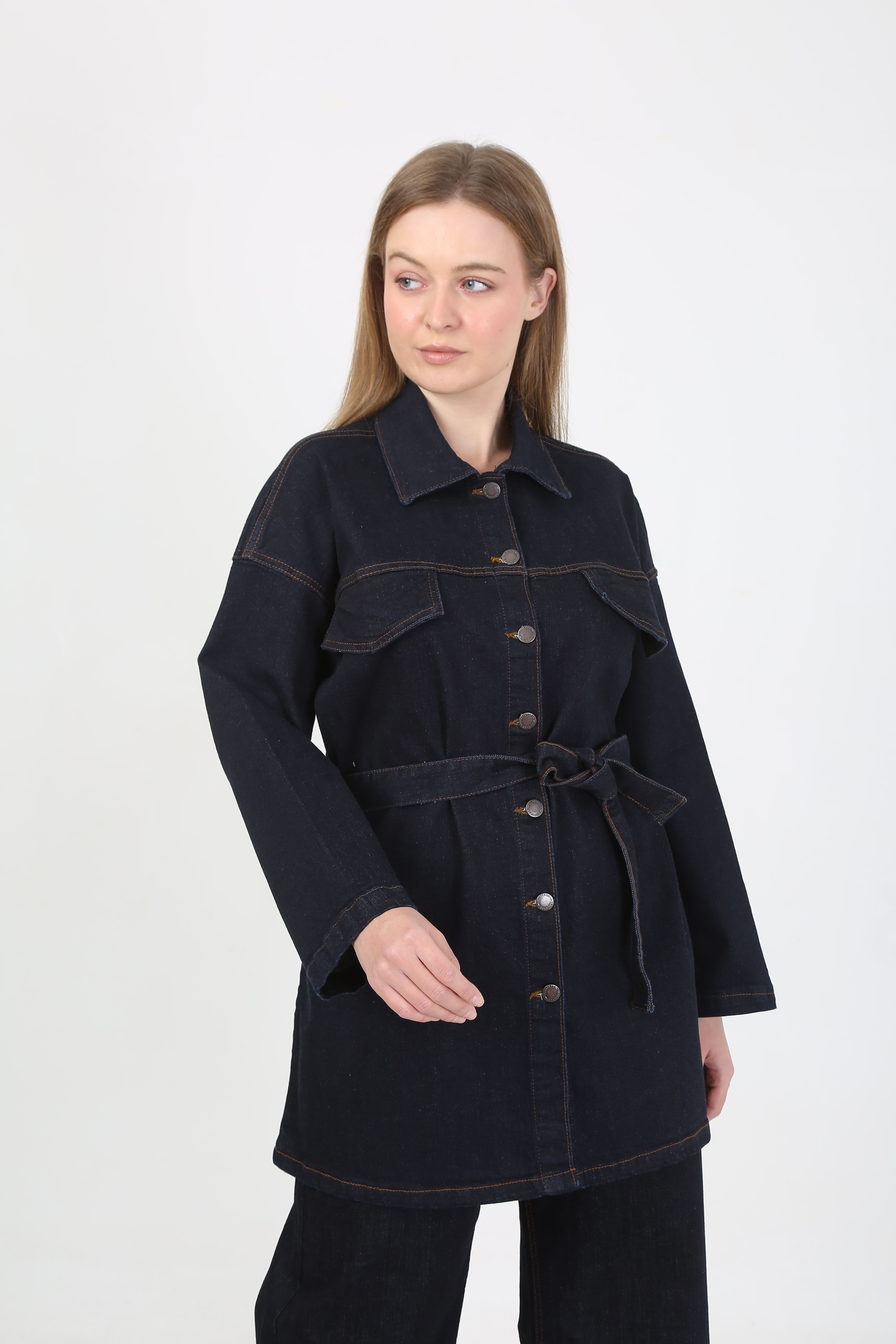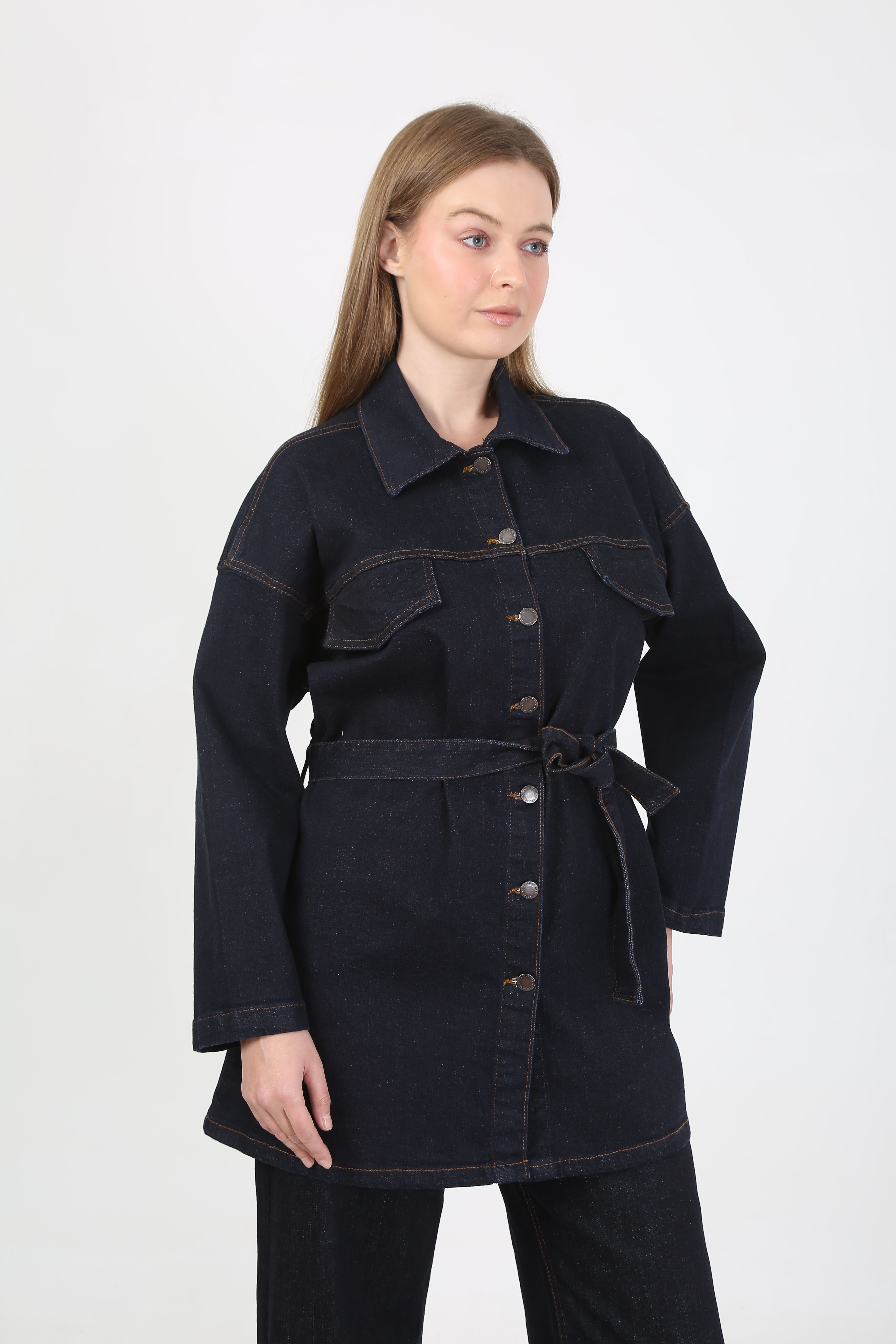 • Ceket Özellikleri: Düğmeli, kuşaklı, cepli, uzun form